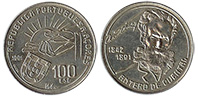 | 100 Escudos (1991) - Km46 100th Anniversary - Death of Antero de Quental |